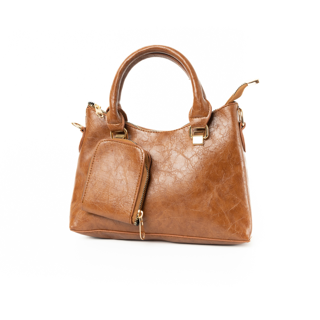 Сумка жіноча стильна містка на блискавці з якісної екошкіри з ручкою та плечовим ремінцем, Коричнева
